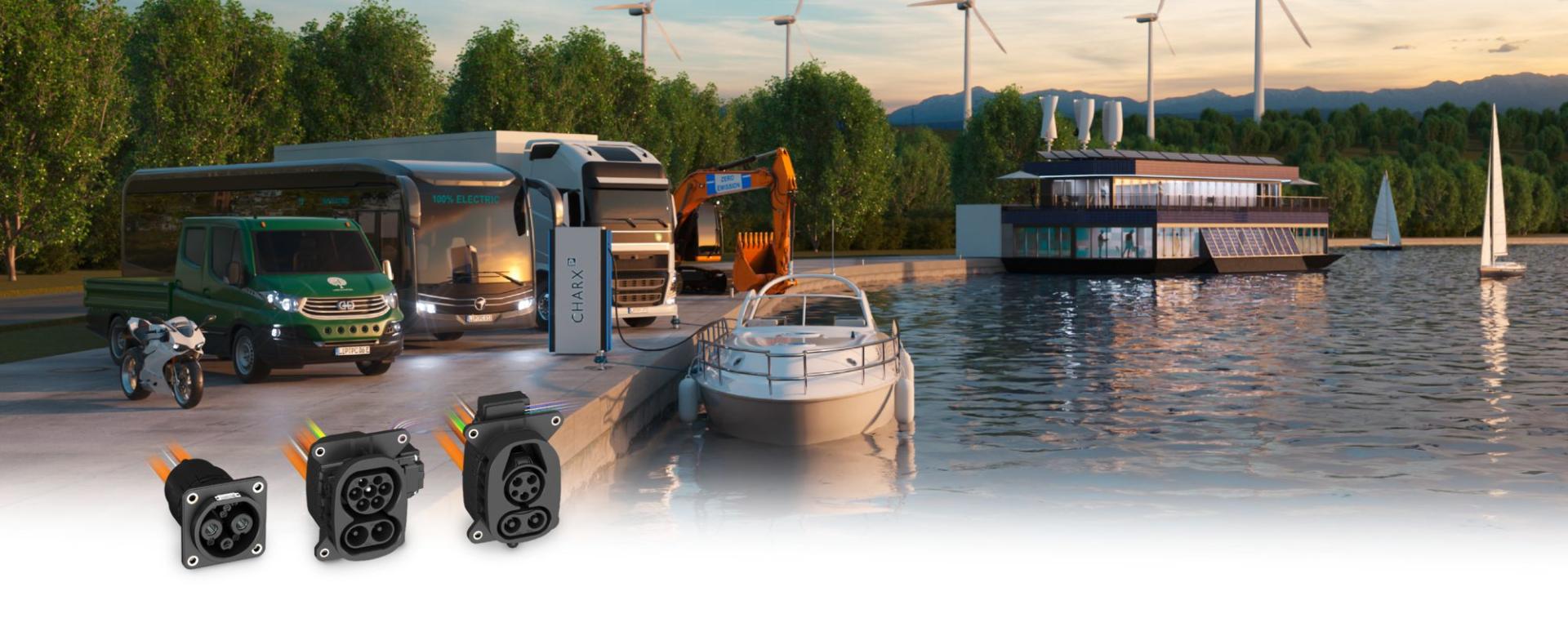 The relevant external dimensions and screw-connection geometries of the CHARX connect universal CCS charging inlets and AC charging inlets are identical to each other. This enables you to plan the same installation space for each electric vehicle regardless of the target market – from ships to motorbikes.