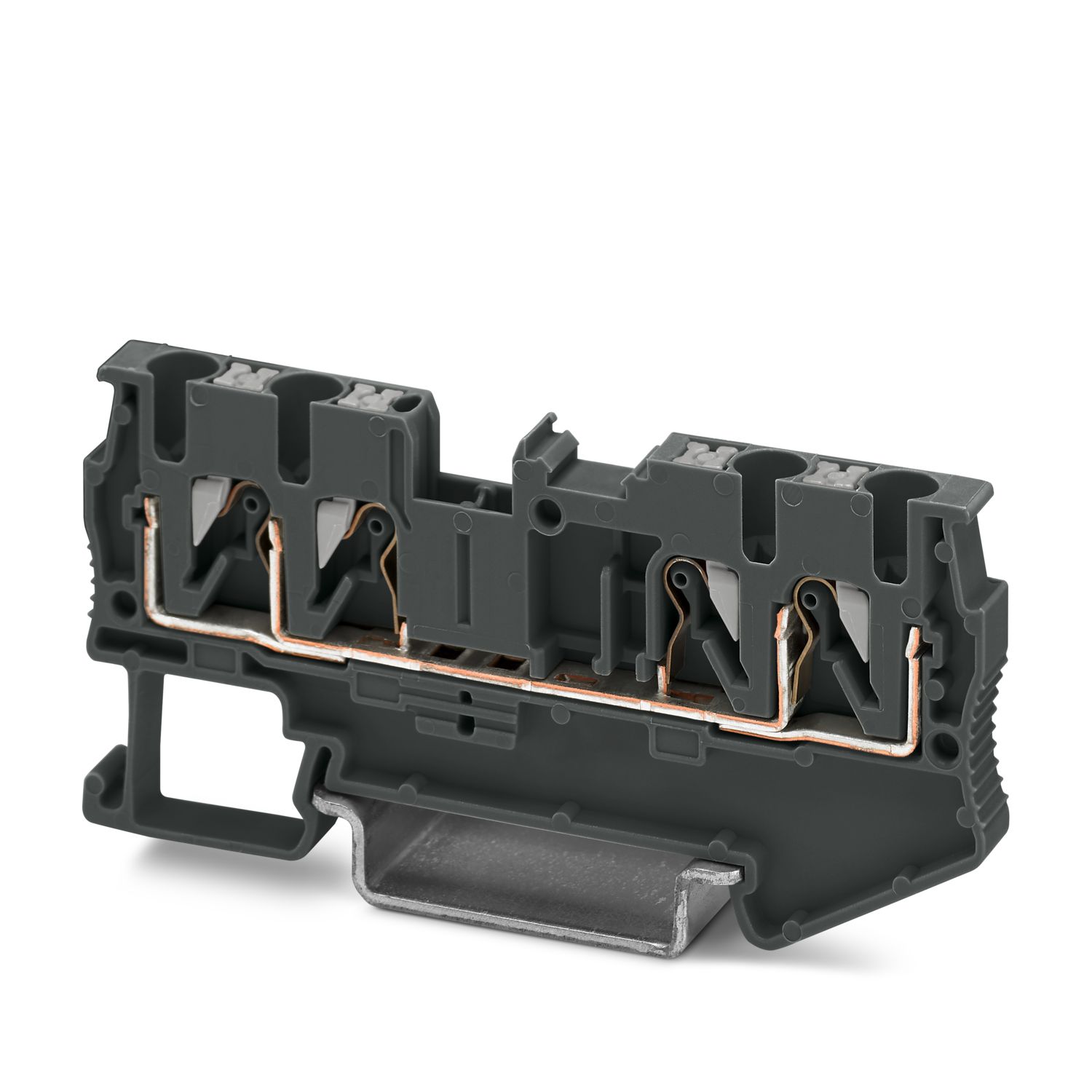 PT 2,5 - 3209510 cầu đấu 2 chân điện áp: 800 V, dòng điện 24A, đi dây lò xo push in, cho dây tiết diện: 2,5 mm², rộng: 5,2 mm, màu: xám, gắn Din của Phoenix Contact.
